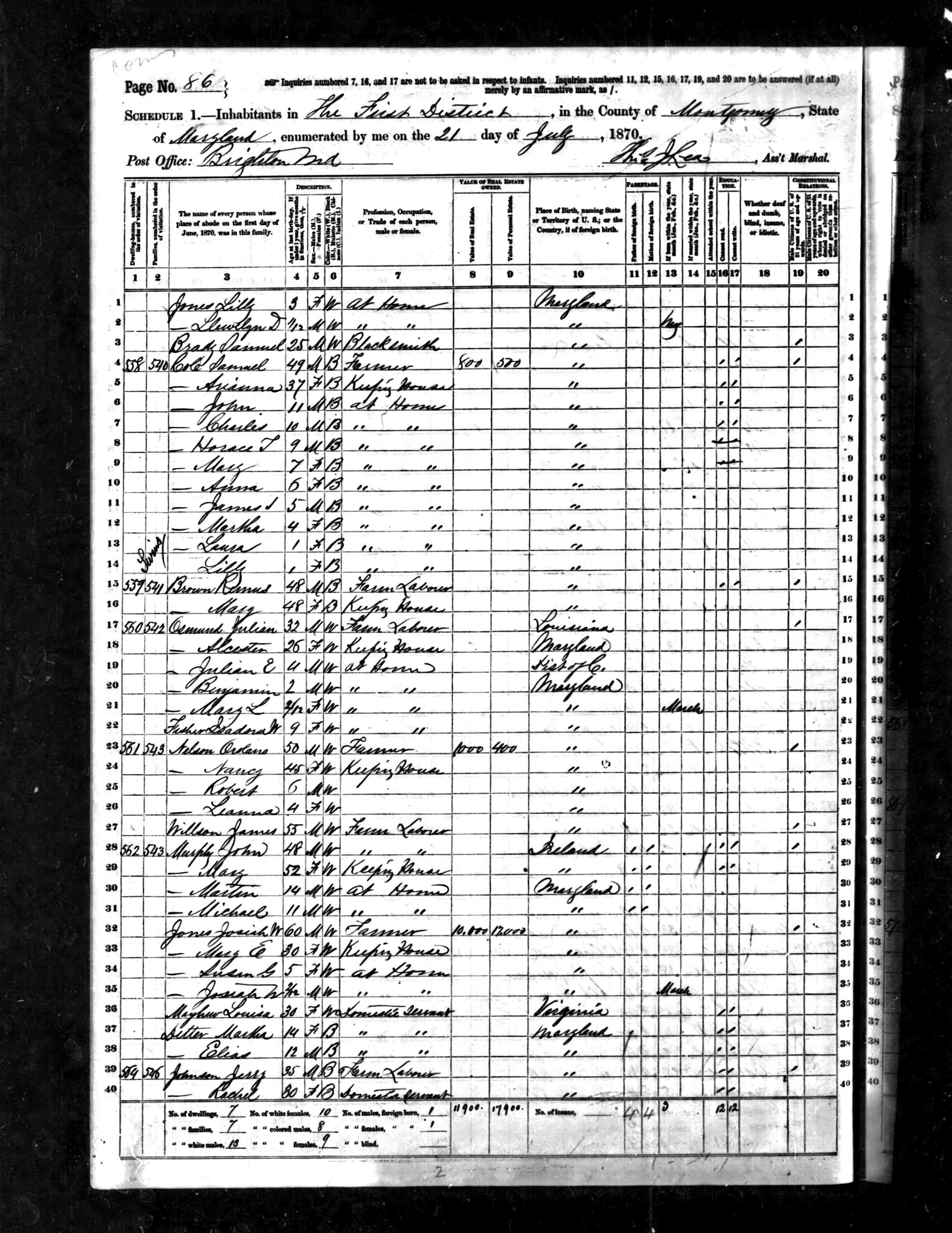 Maryland Marriage Record for Josiah W. Jones and Mary E. Barnesly, May 30, 1864, Montgomery County. Jordan Dodd. Liahona Research, comp. Maryland Marriages, 1667-1899. The Generations Network, Inc., 2000. www.ancestry.com.
