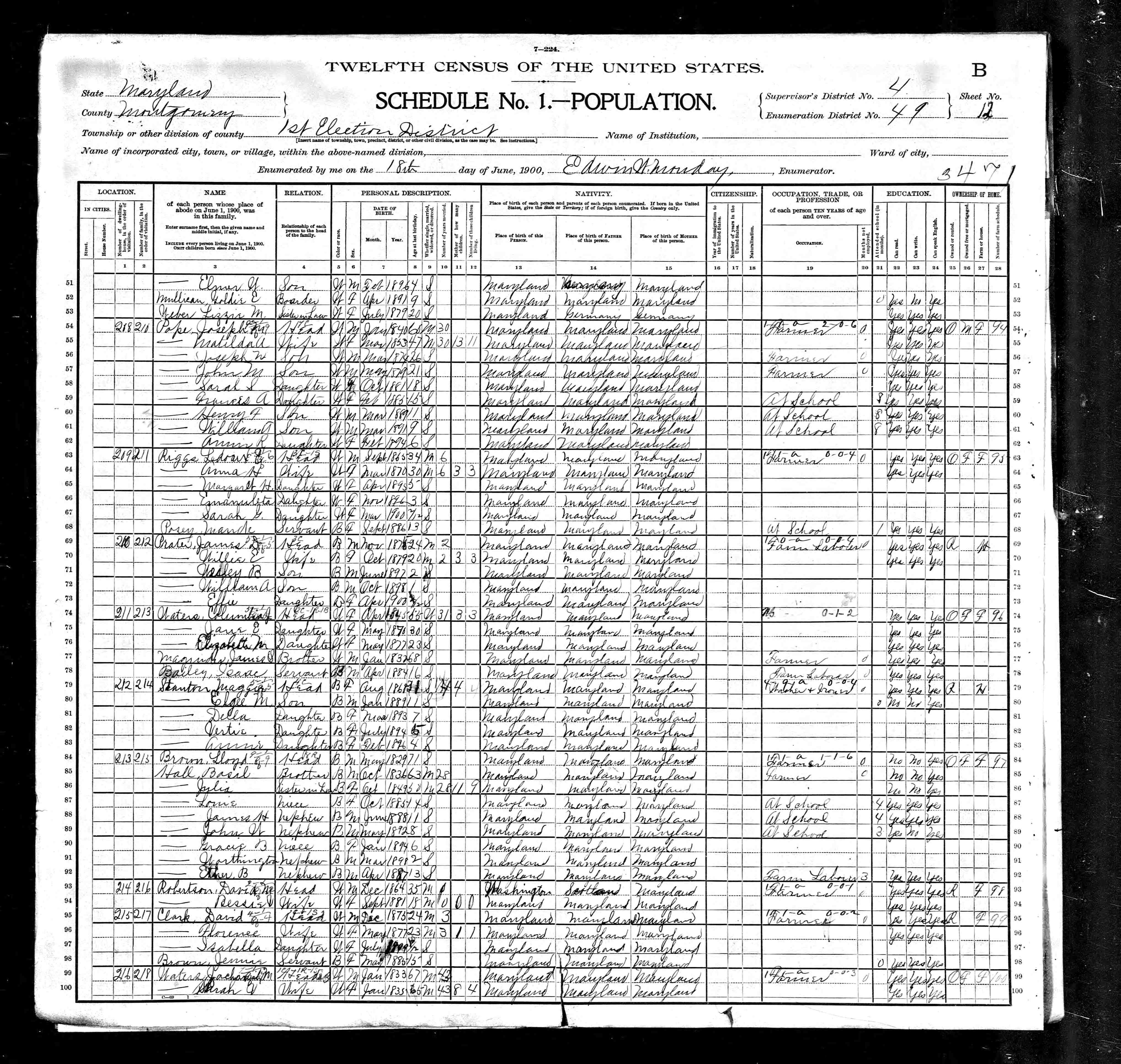 DEPARTMENT OF HEALTH BUREAU OF VITAL STATISTICS, (Death Record, Counties), 02/1918, [MSA S1179-2154]. Lloyd Brown, February 17, 1918, Montgomery County.