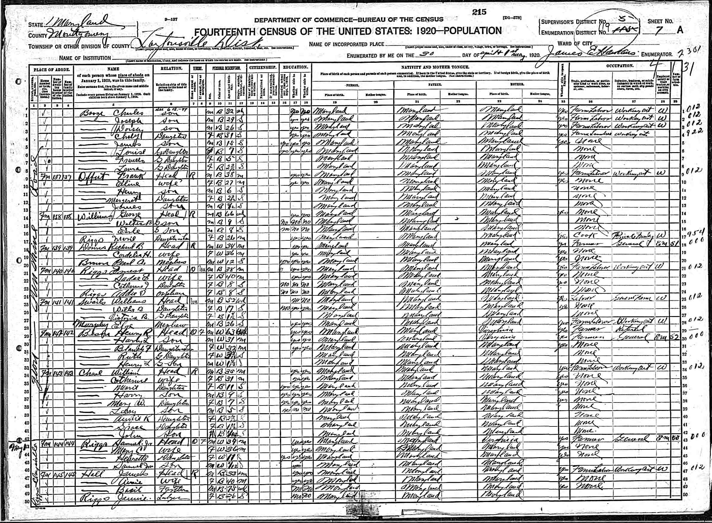 DEPARTMENT OF HEALTH BUREAU OF VITAL STATISTICS, (Death Record, Counties), 03/1918, [MSA S1179-2177]. William Hall, March 30, 1918, Montgomery County.