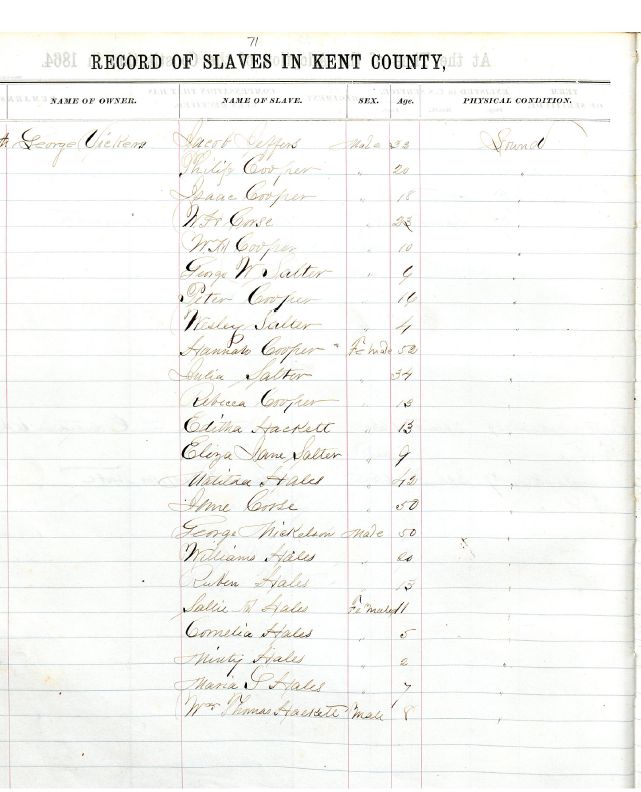 Slaves and Owners, by USCT Regiment, Folder: Slave Roll 7th USCT, MSA