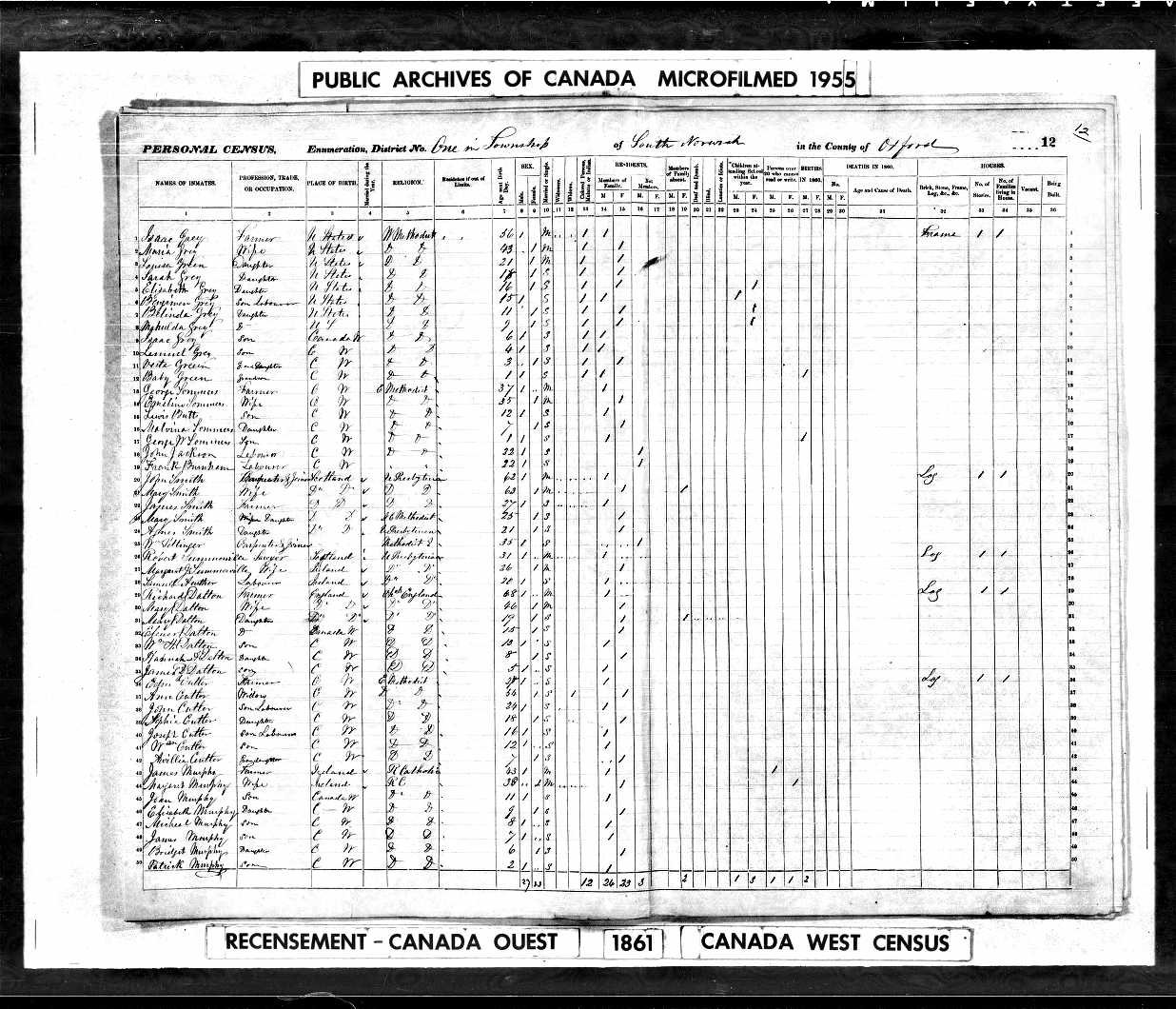 10. Ancestry.com. 1861 Canadian Census, South Norwich, Oxford, Ontario, p. 1208.