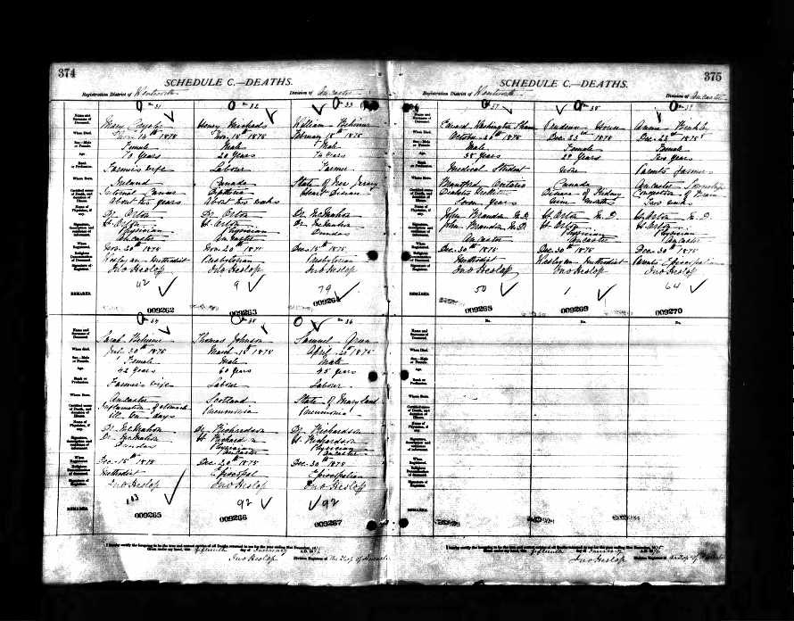 12. Ancestry.com. Deaths, 1875 - Ancaster, Wentworth, Ontario, p. 15.