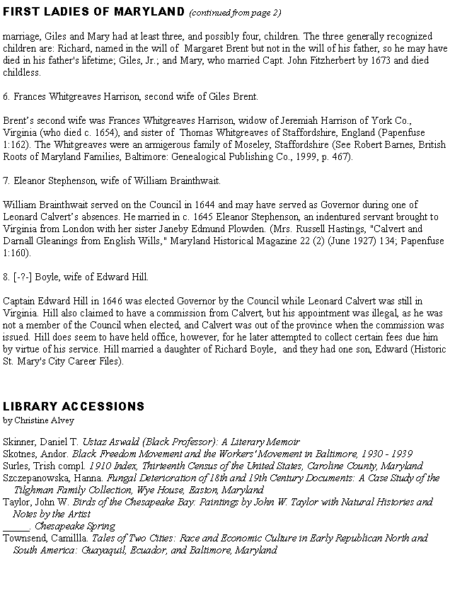 FIRST LADIES OF MARYLAND, 1634-1777, PART 2