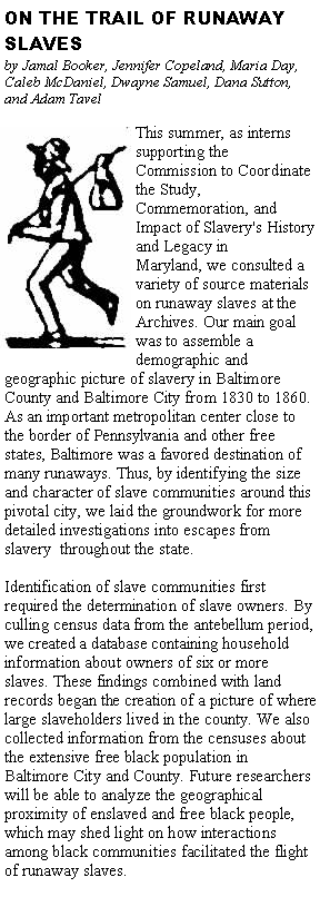 slaves accompanying a runaway. Future users of the database