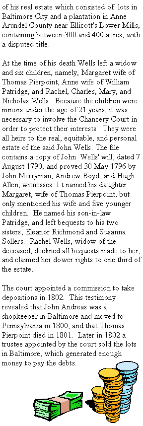 case concerns the estate of John Wells, Baltimore County, 1798-1802, and